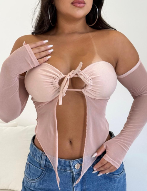 A Blusa Ana é aquela peça fashion que transforma qualquer look. Com recorte frontal, amarração no busto e mangas longas, ela valoriza o colo e a cintura, trazendo um visual moderno e super atual.