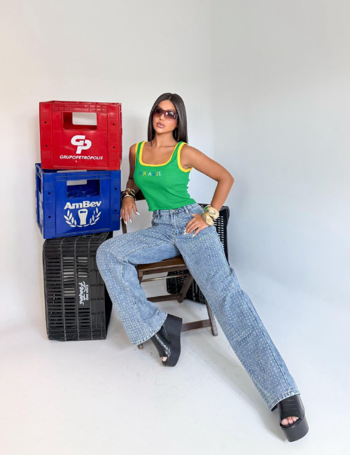 A Regata Brasil é básica, versátil e cheia de personalidade. Modelo cavado com acabamento contrastante e estampa frontal “BRASIL”, perfeita para looks casuais e despojados.